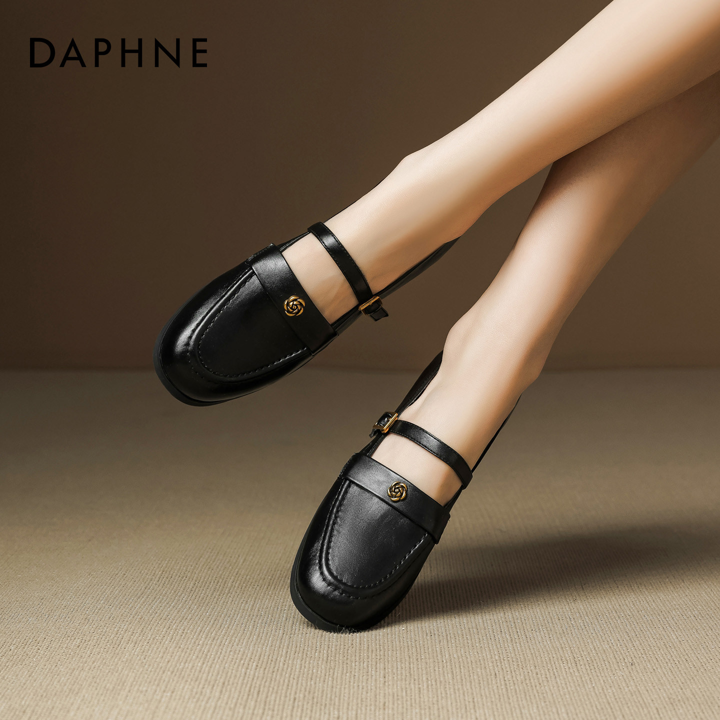 女2026春季 新款 山茶花小皮鞋 达芙妮黑色乐福鞋 软底配裙子平底单鞋