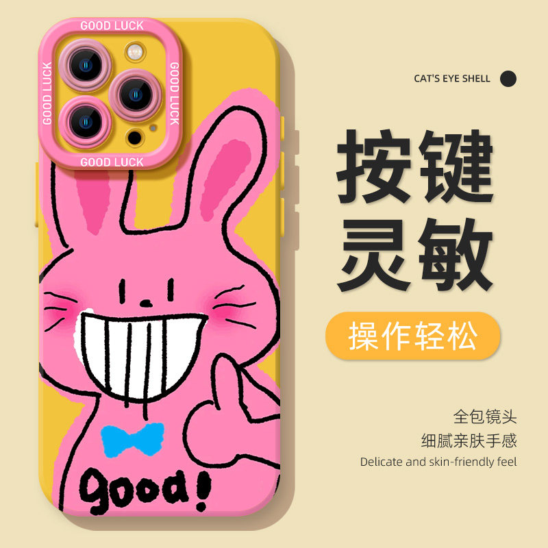 粉色搞怪兔子适用苹果16手机壳iphone15promax情侣14plus搞笑13mini趣味12新款 11抽象x可爱8小众17男xs女7