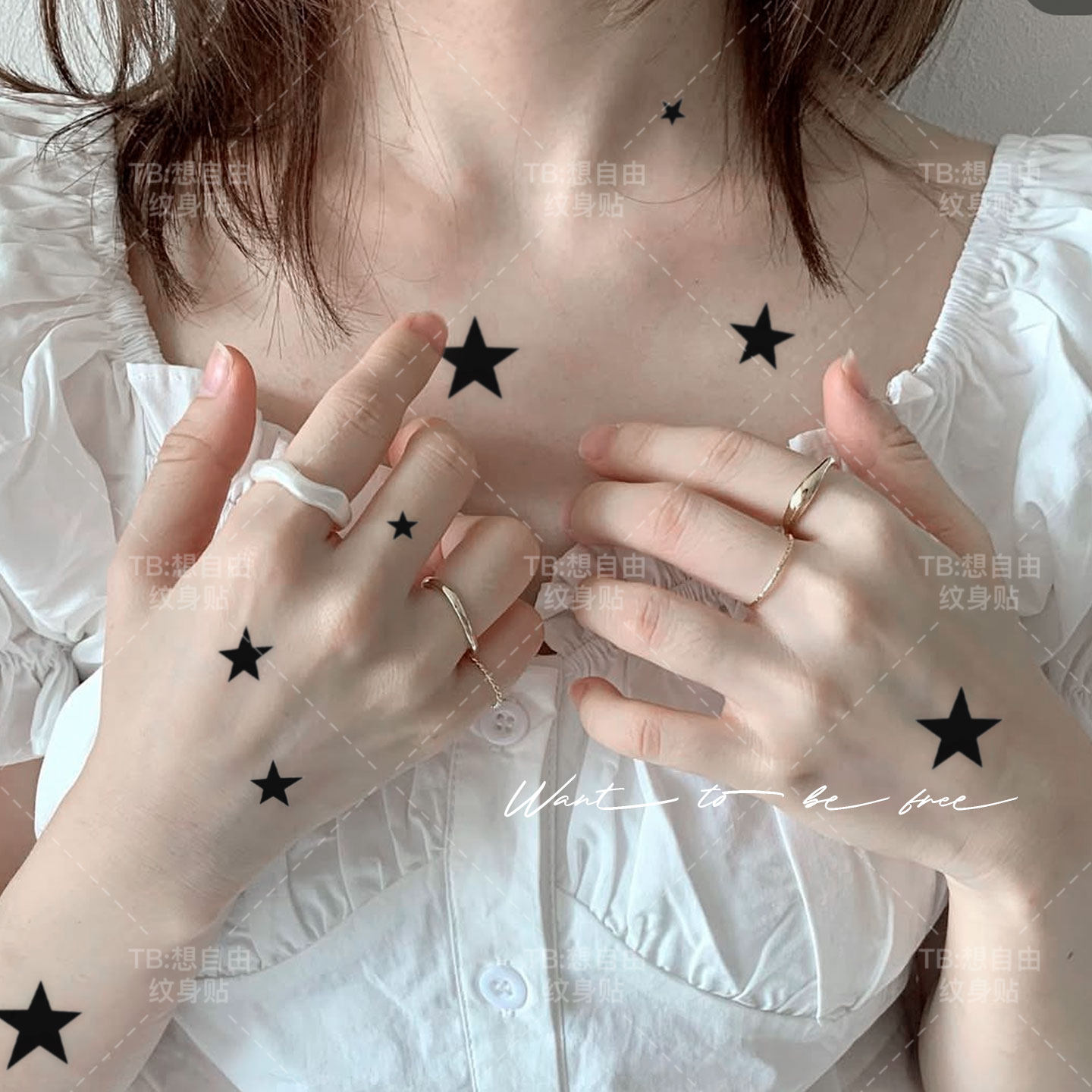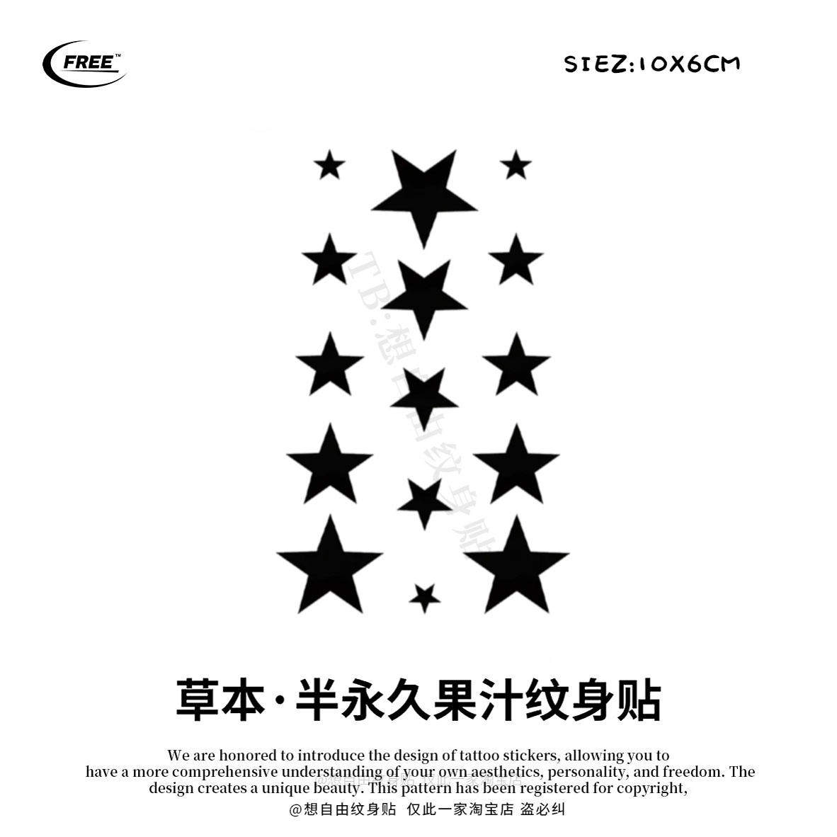 想自由 星星草本草木果汁纹身贴纸遮盖遮瑕高级感防水音乐节潮酷