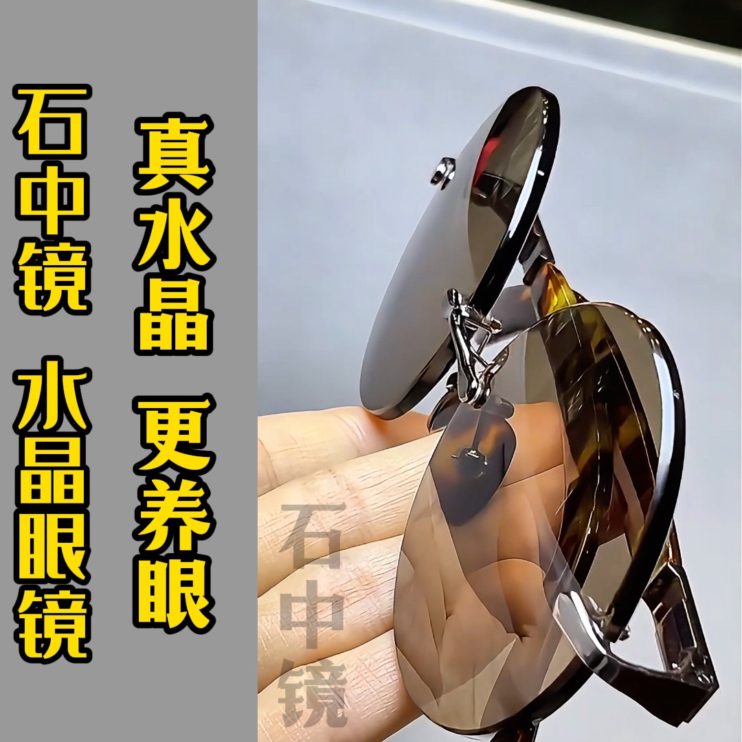 真水晶石眼镜石头镜水晶太阳镜墨镜司机开车镜超清晰清凉护目养眼