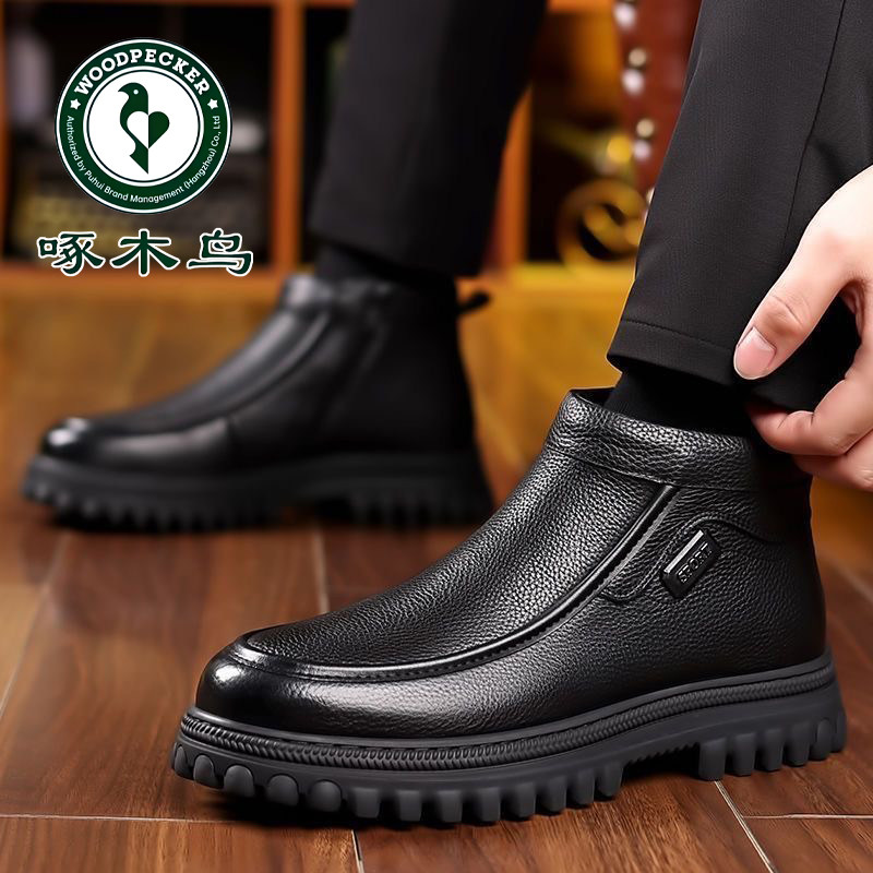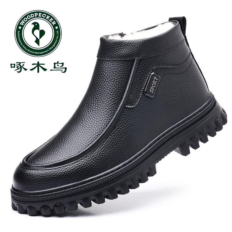 啄木鸟东北大棉鞋 雪地靴男 高帮爸爸鞋 男冬季 保暖加绒加厚羊毛皮鞋