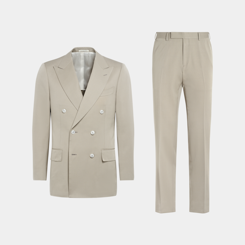 套装 SUITSUPPLY浅绿色羊毛马海毛混纺西服合体男士 双排扣西装