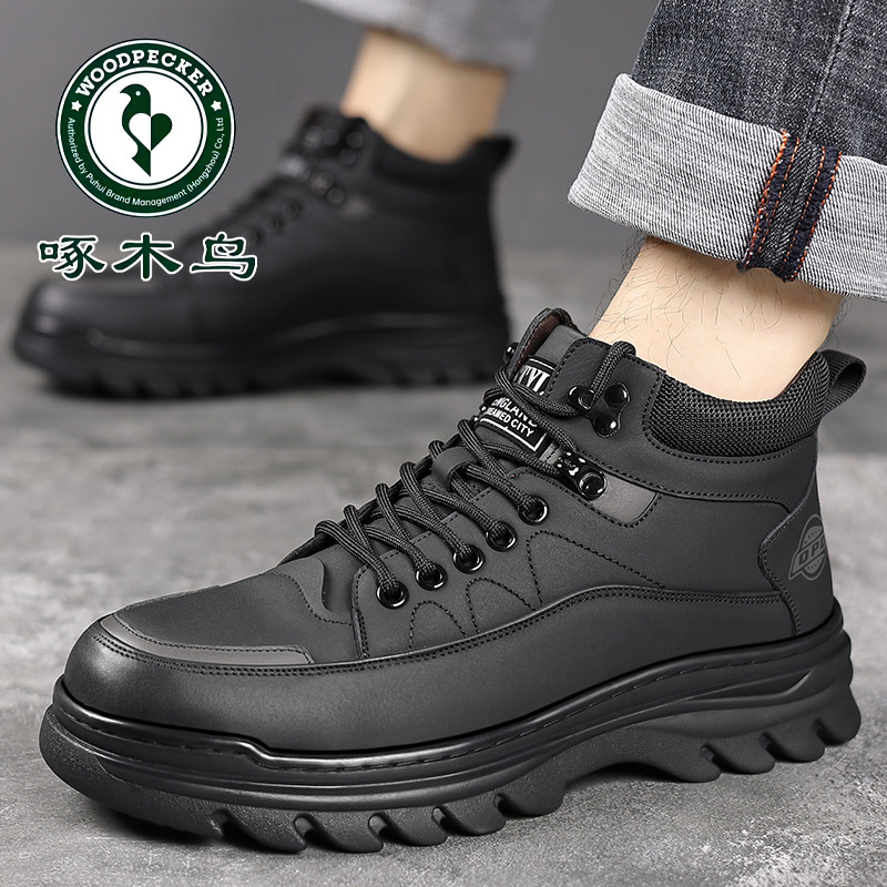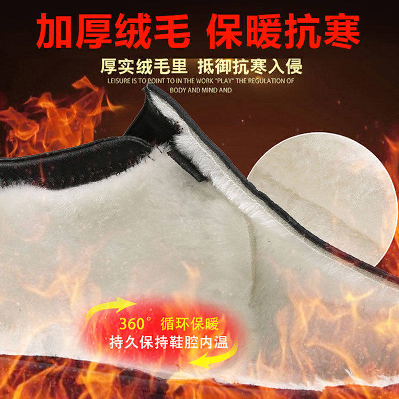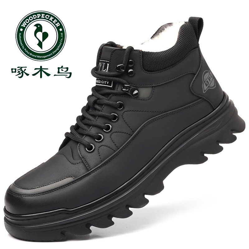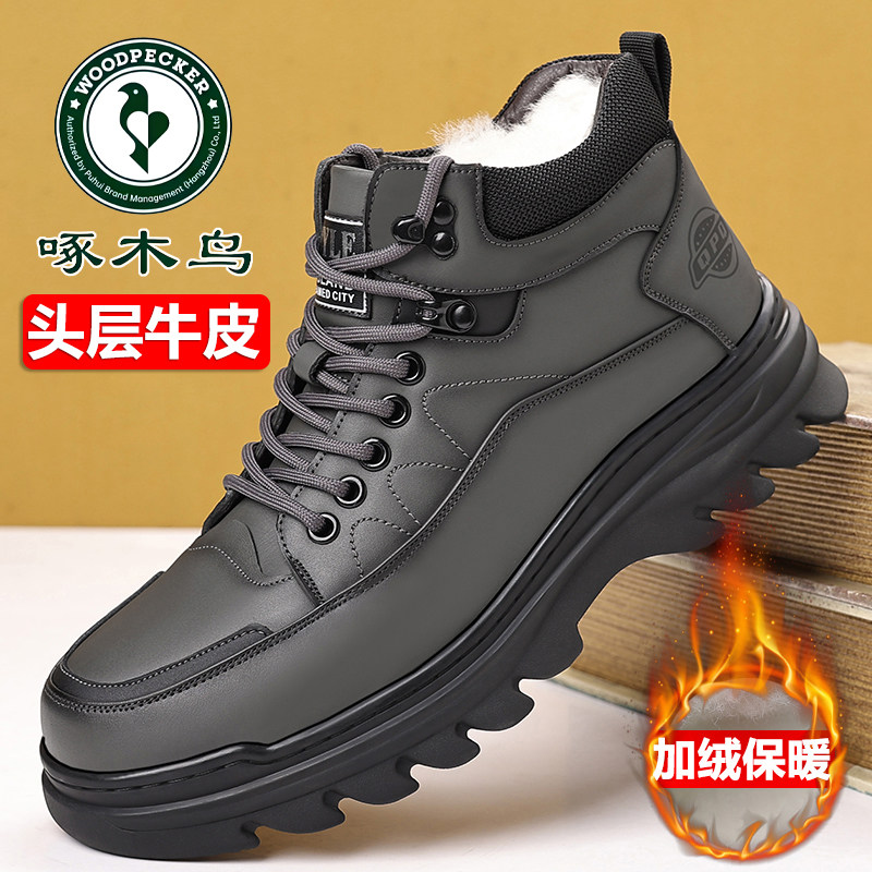 啄木鸟冬季 男 真皮羊毛加绒中老年雪地靴中高帮保暖棉皮鞋 男士 棉鞋