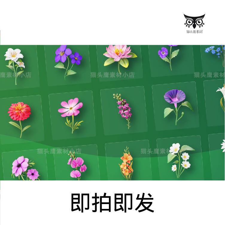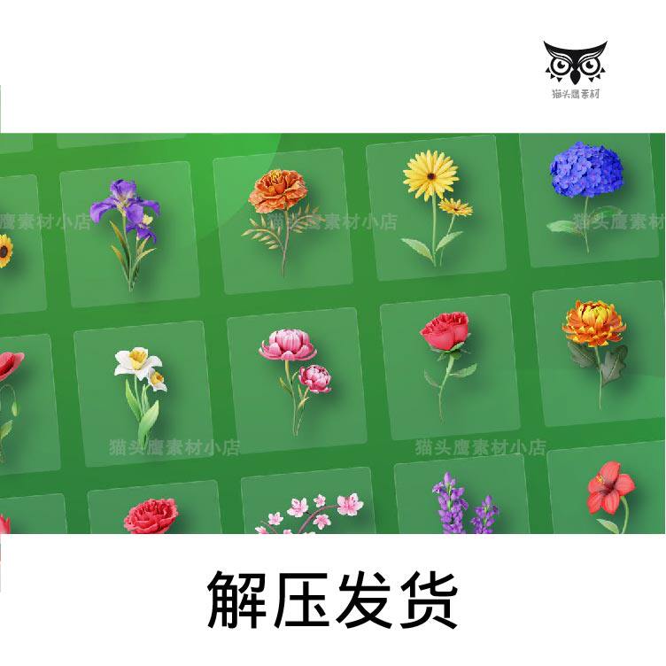 30款 立体时尚 花卉鲜花植物花朵插画3D图标icon插图PNG免抠图片