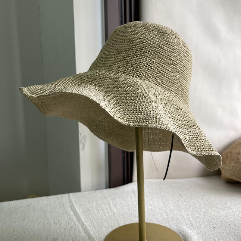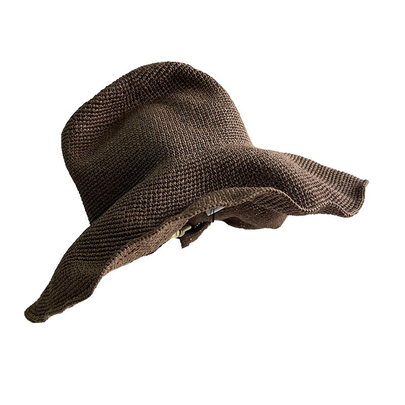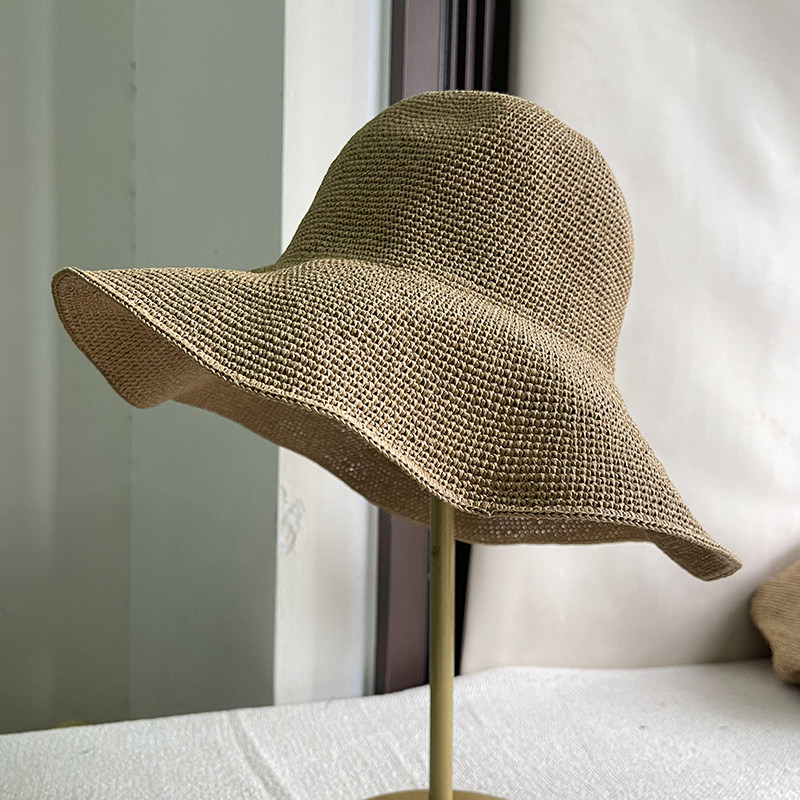 出日韩单极简慵懒风防晒宽檐编织草帽夏轻便渔夫帽可折叠黑色咖色