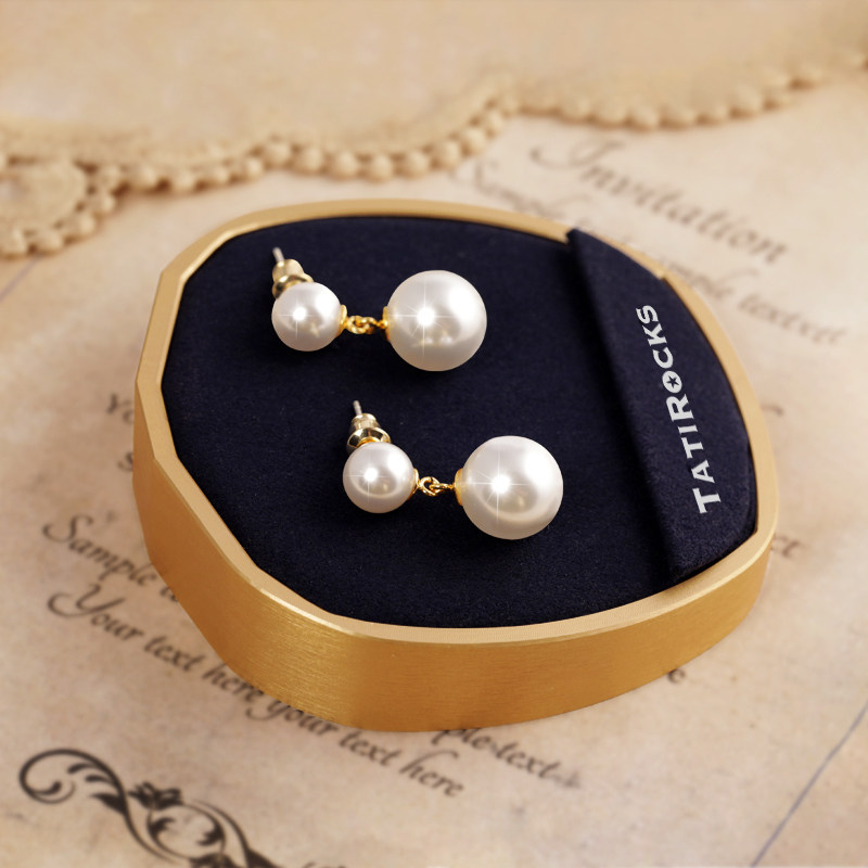 Tatirocks双珍珠耳环女新款 丹麦 设计师 灰色纯银轻奢耳钉现货