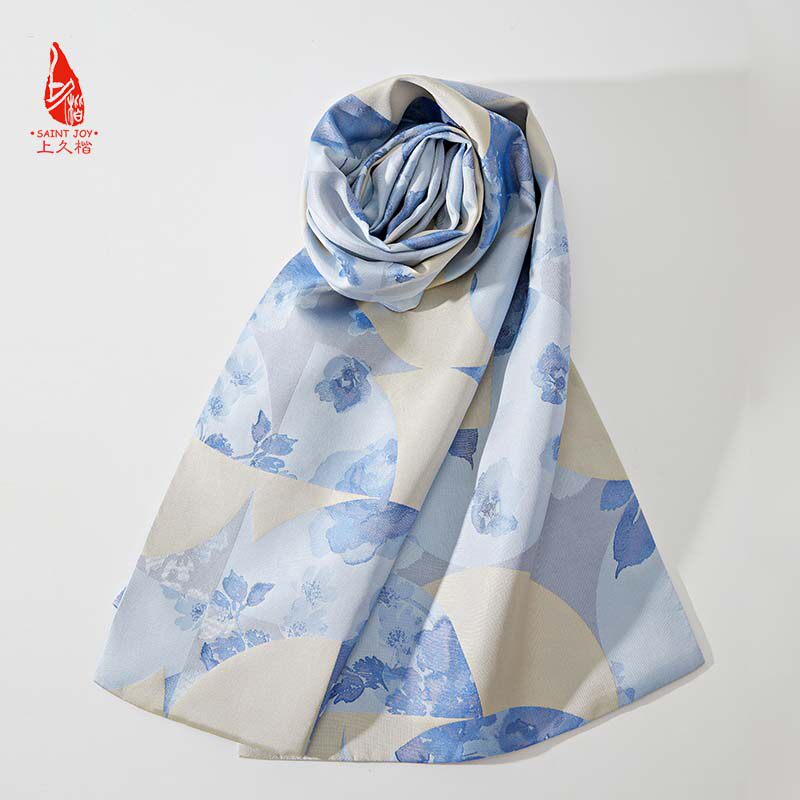 上久楷宋锦双面长巾围巾素雅高级生日礼物送礼青花春韵 SCS22004