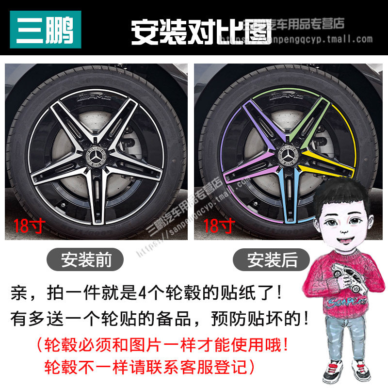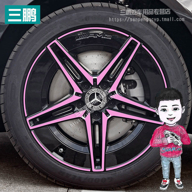 适用23 饰轮圈划痕遮盖熏黑化 轮毂贴纸改装 25款 奔驰C级260皓夜版