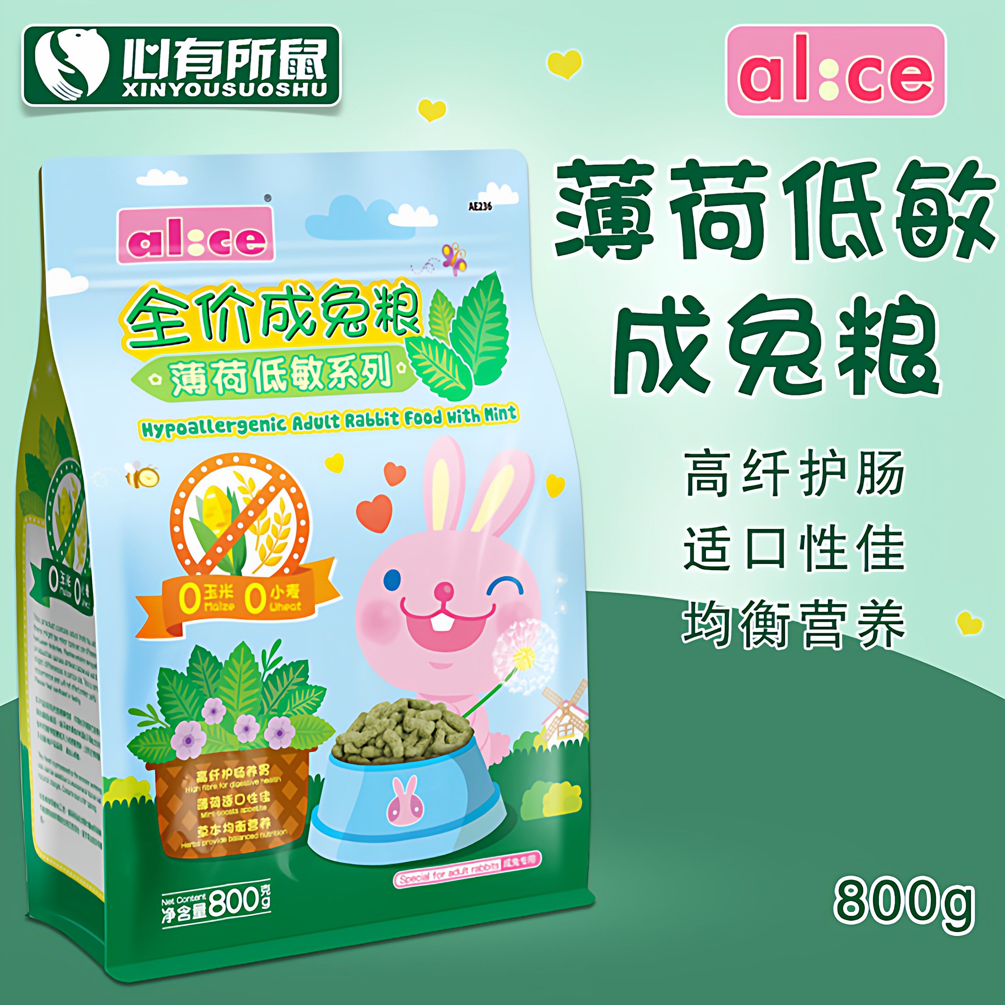 alice兔粮薄荷提摩西草膨化成年兔粮苜蓿幼兔饲料垂耳兔子口粮