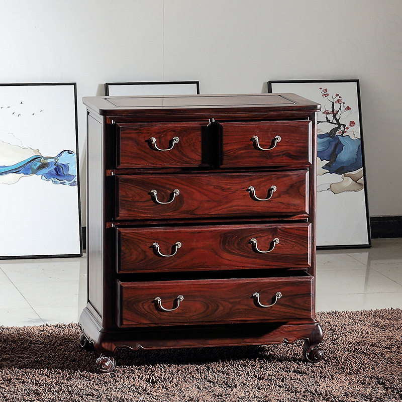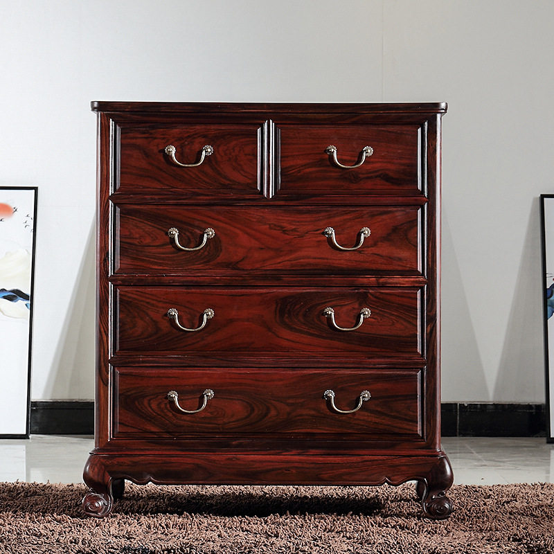 交趾黄檀红木五斗柜老挝大红酸枝红木家具储物柜客厅卧室边柜实木