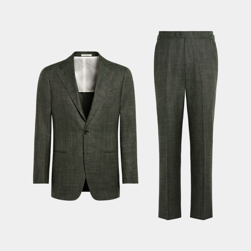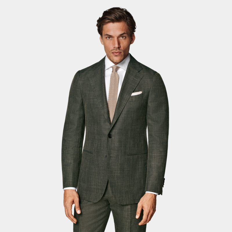 套装 SUITSUPPLY西服深绿色羊毛桑蚕丝混纺男士 西装