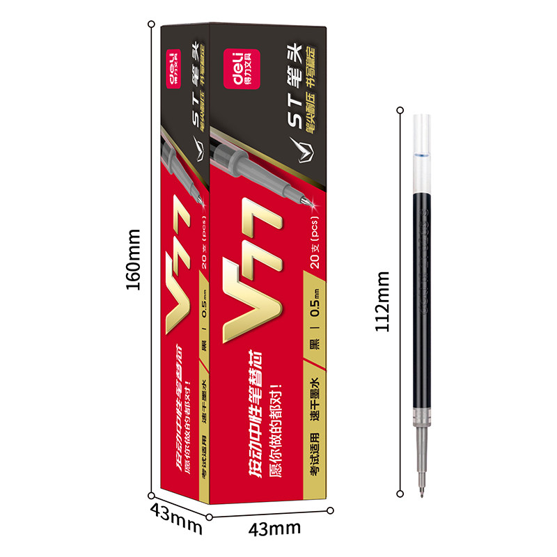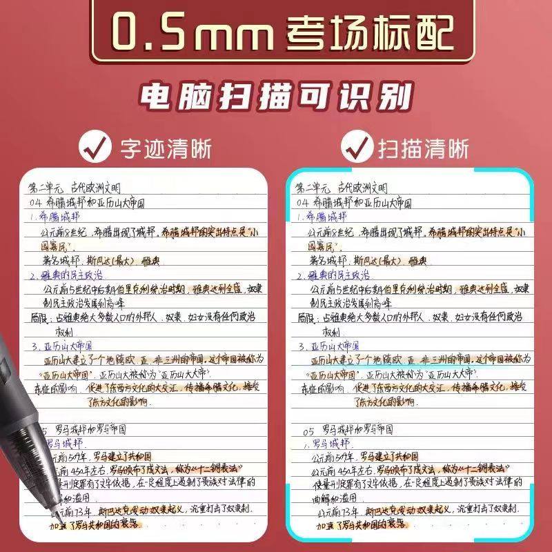 V77连中三元 考试专用笔芯黑色速干0.5加强型针管按动中性笔替芯
