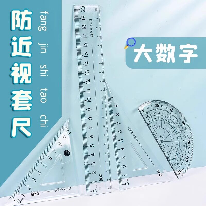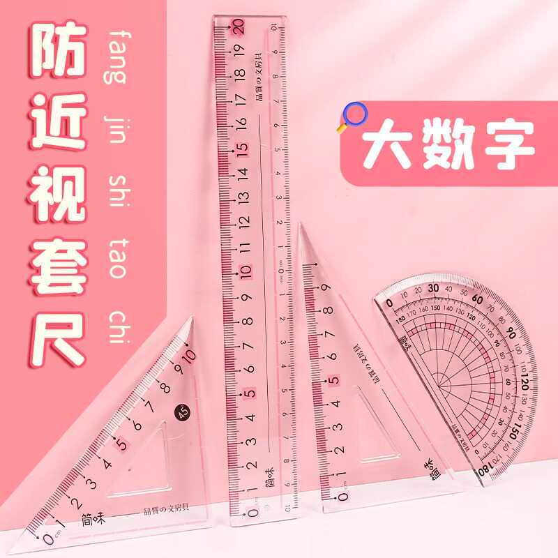 去购买>> 下架了的话点我重新搜索本站来源:淘宝(www.xiuda.net)购物与天猫(www.tianmaocn.com)是一个知名的电商平台,淘宝同时您也可以访问(www.taobao.lc)来发现更多精彩的购物选择天猫(www.tmall.lc)。 齐心学生考试绘图套尺直尺三角尺量角器各类尺三角板功能尺子多 晨光豚豚学习派四件套尺15cm三角尺直尺半圆刻度清晰学生ARL960JM三角板各类尺卡通学习用品量角器透明可爱