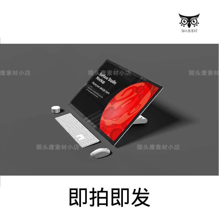 4款 UI样机PSD贴图效果图智能图层素材 APP 多角度Surface Studio