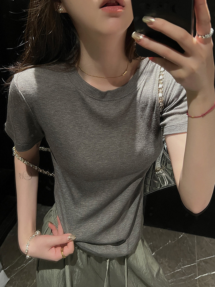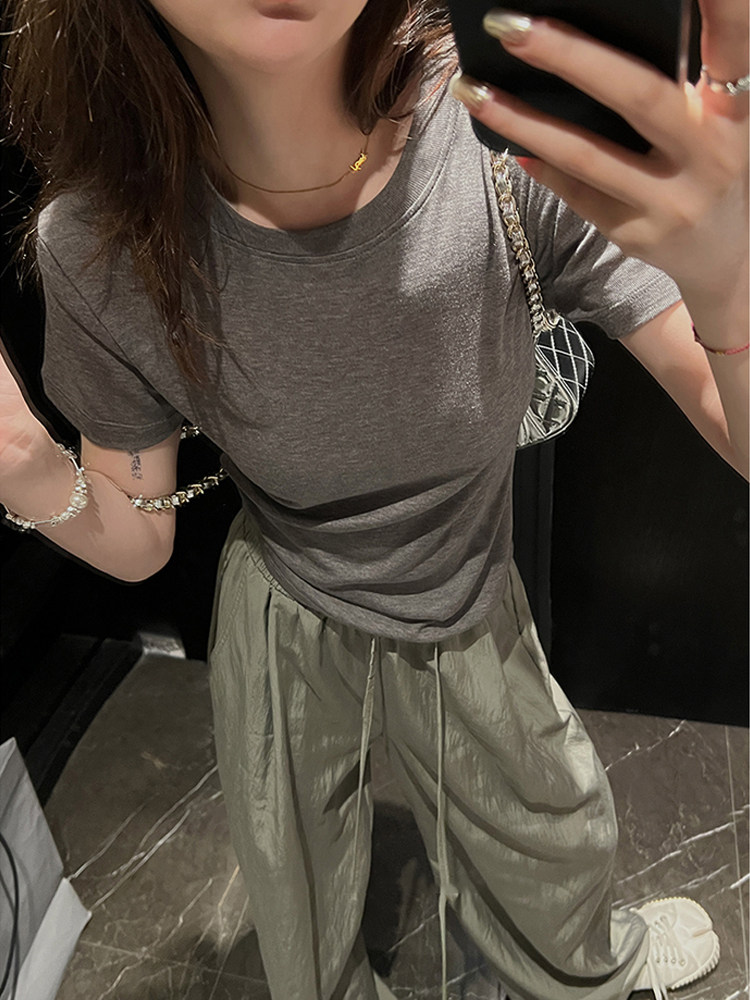 绵绵柔雾精致t桑蚕丝天丝莱赛尔短袖 LIL CHER2025新款 圆领t恤简约