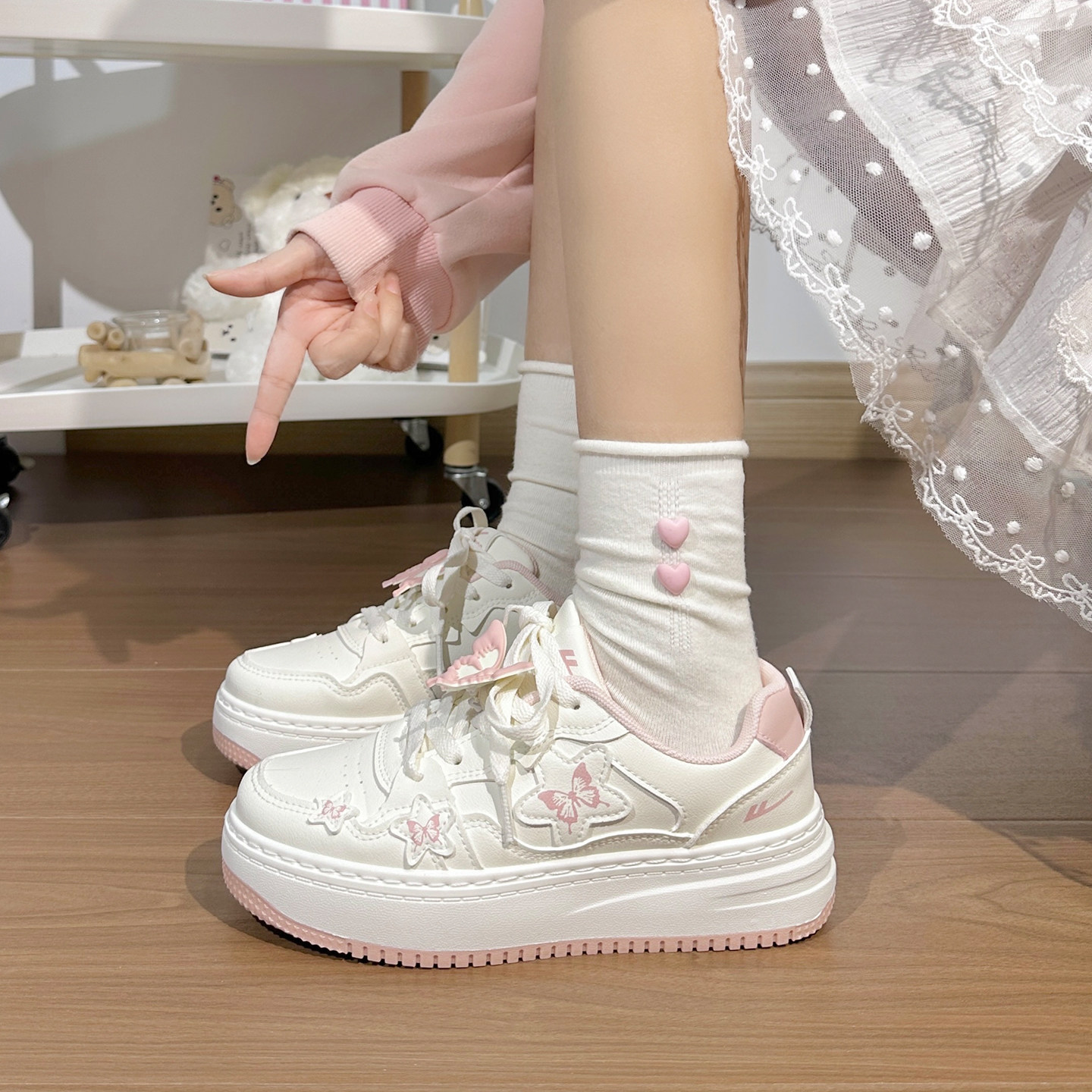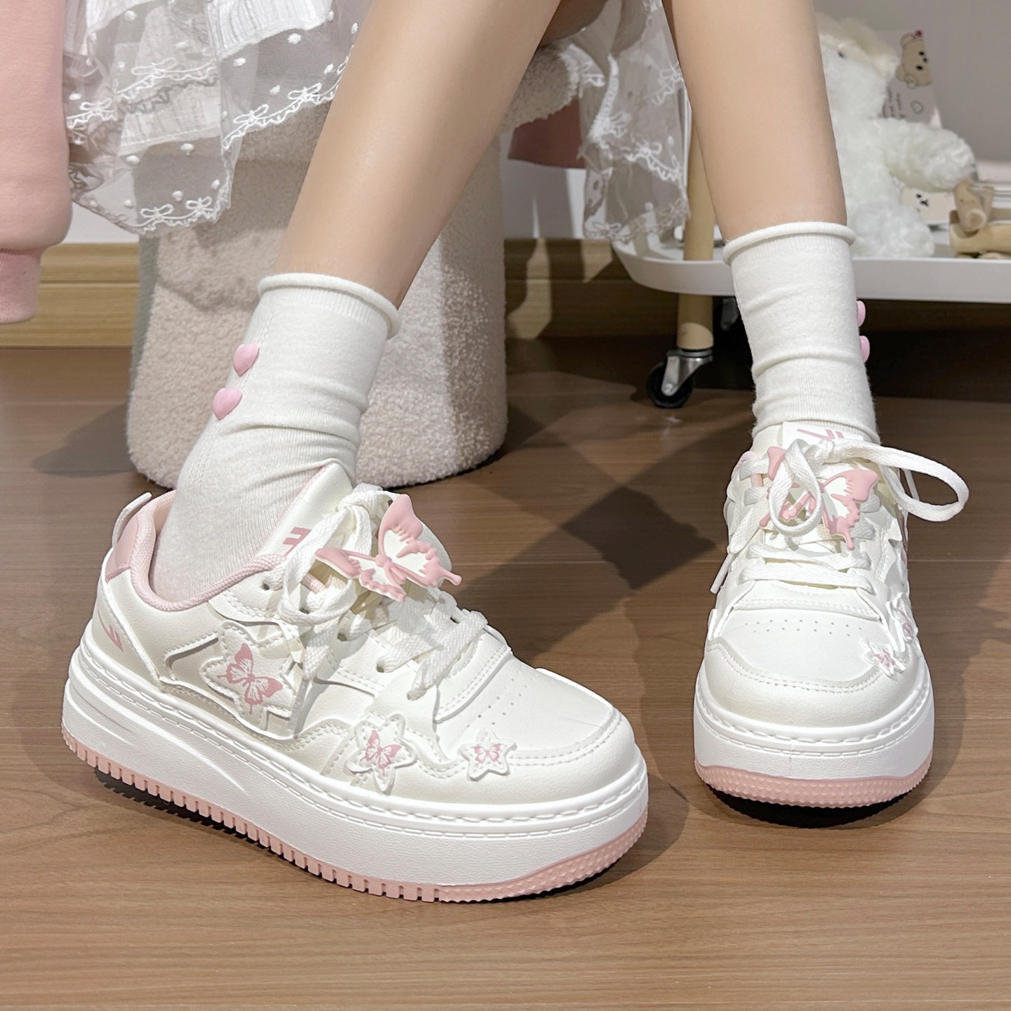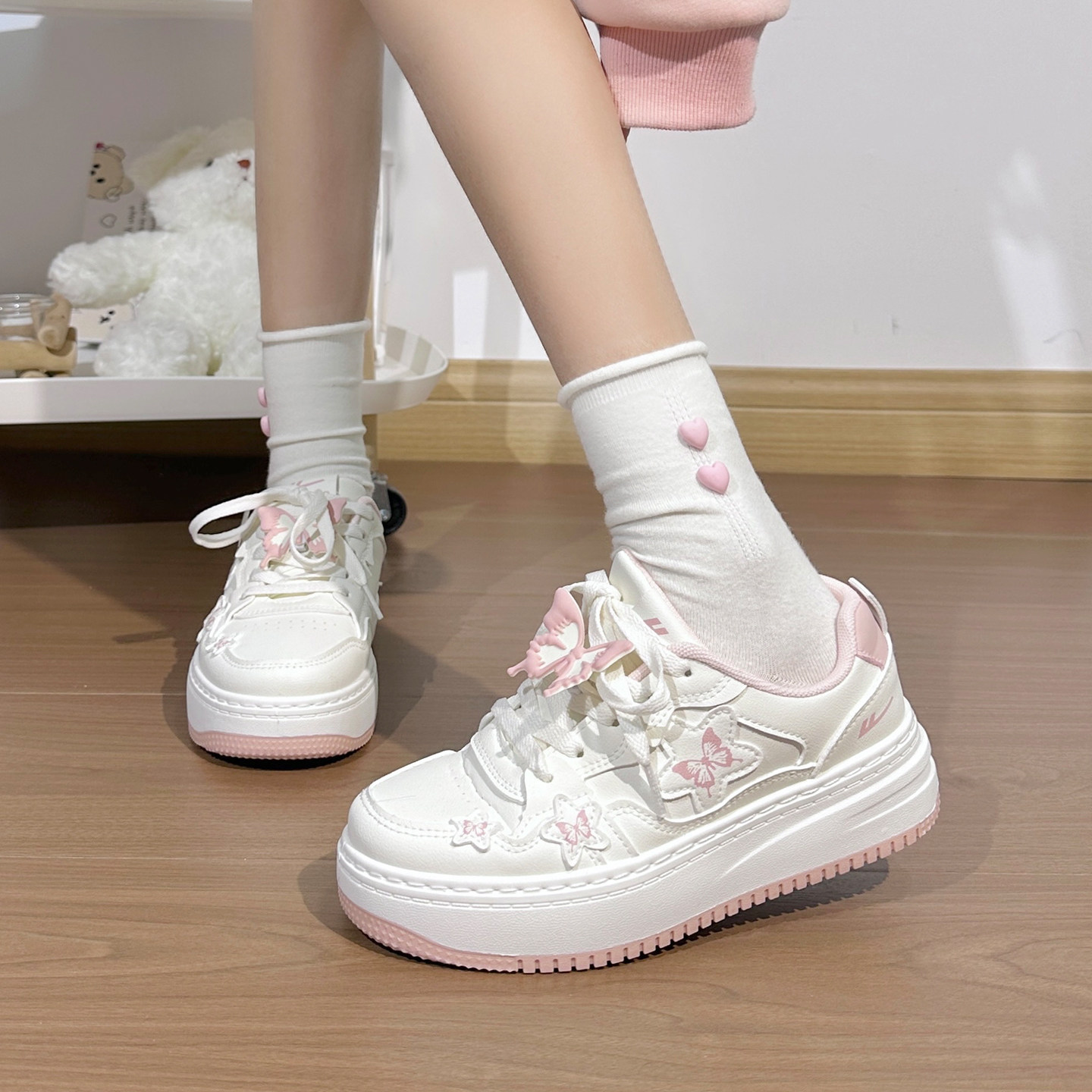 秋冬新款 百搭高颜值厚底小白鞋 加绒二棉板鞋 回力蝴蝶女鞋 学生鞋 子