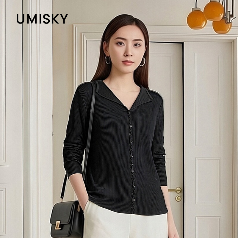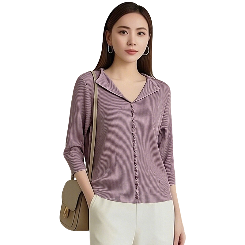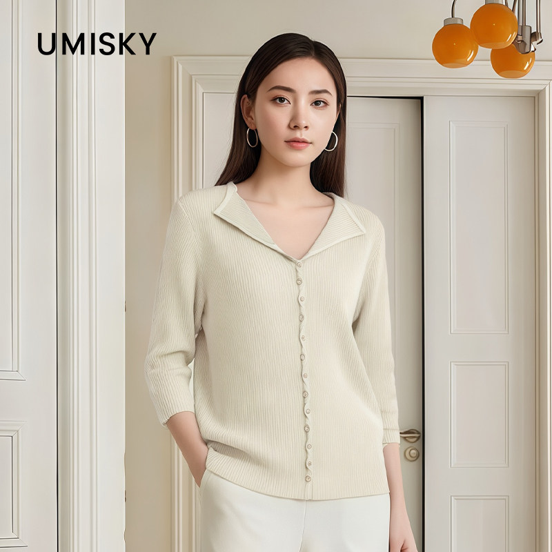 翻领针织衫 优美世界旗下女装 七分袖 上衣LM2W2012