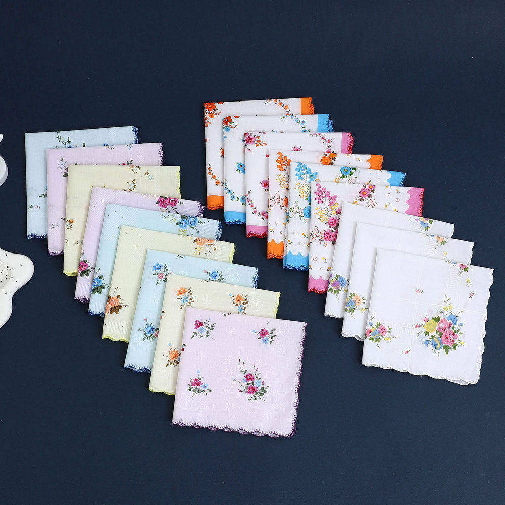 怀旧薄款 多条装 女士纯棉印花手帕柔软全棉花朵手绢老式 擦汗巾手巾