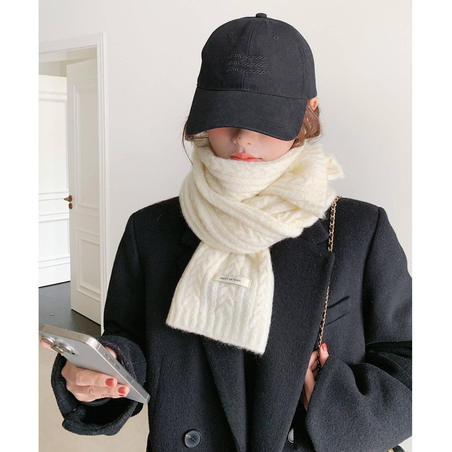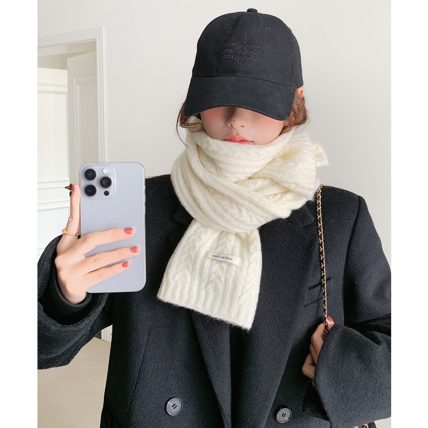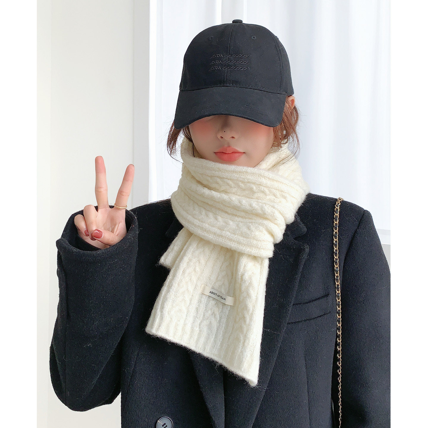 白色围巾女冬季 2025新款 含羊毛混纺加厚学生韩系氛围感女生围脖潮