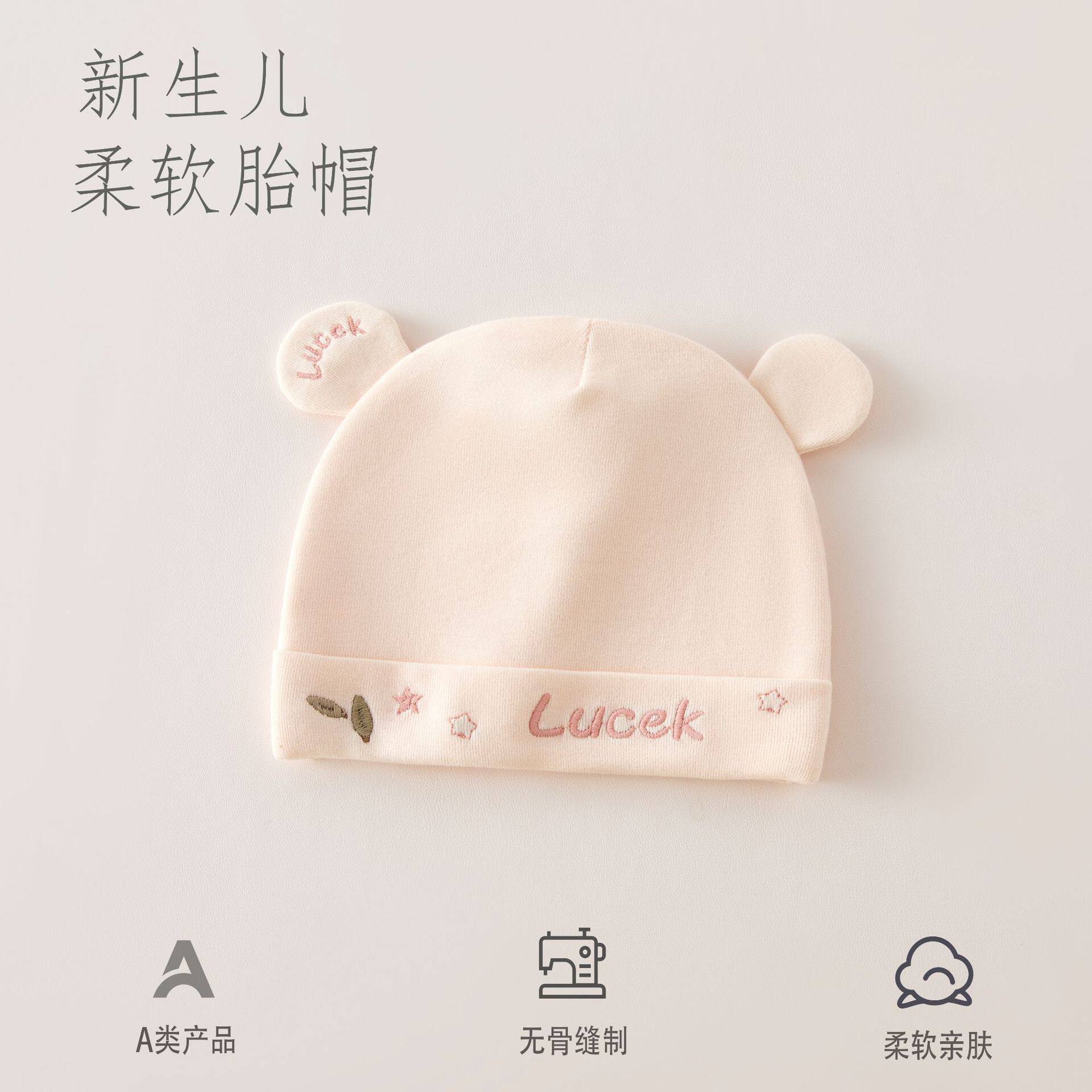 3月婴儿帽子春秋双层棉质婴幼儿护囟门宝宝新生儿胎帽保暖防风