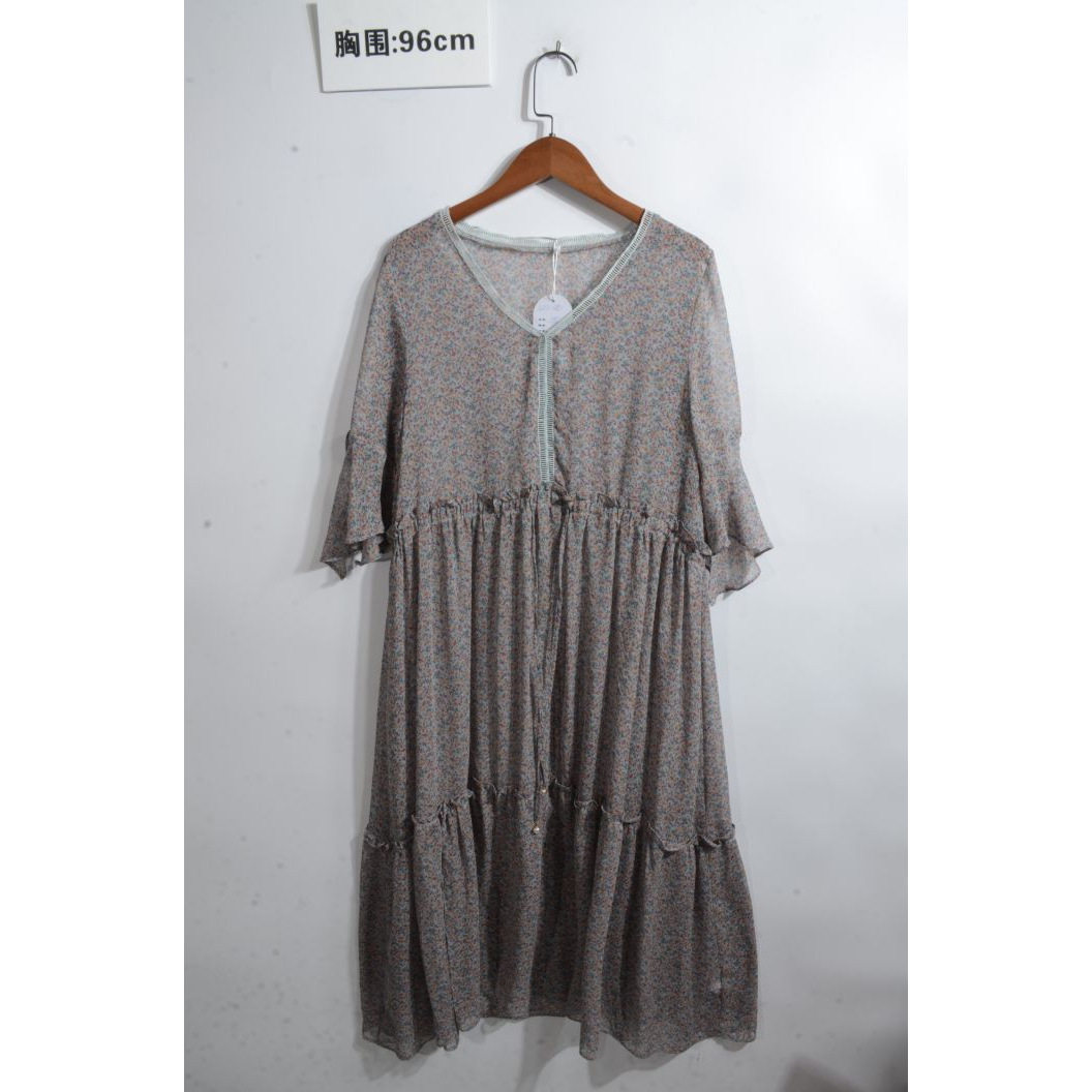 瑕疵女装 夏季 真丝桑蚕丝连衣裙名媛风碎花长裙印花真丝O22