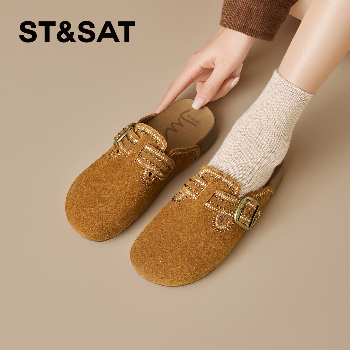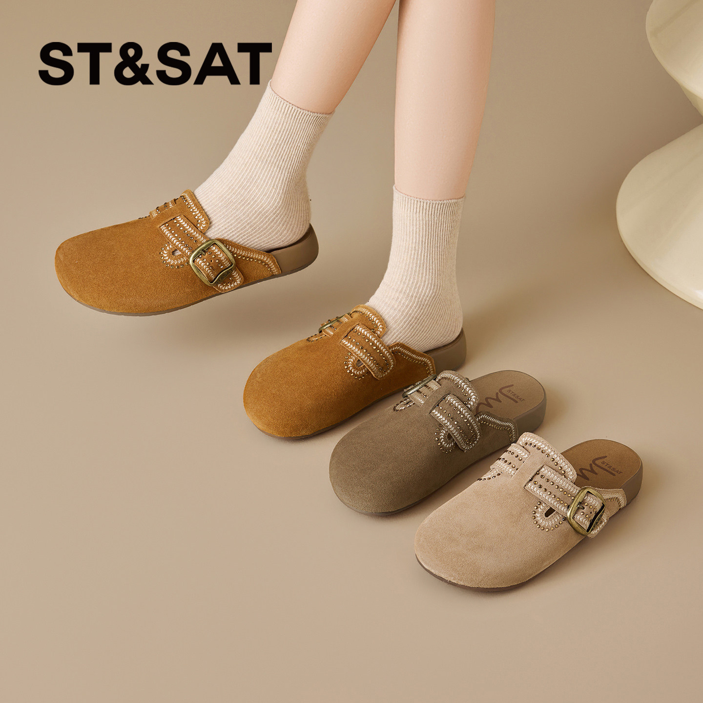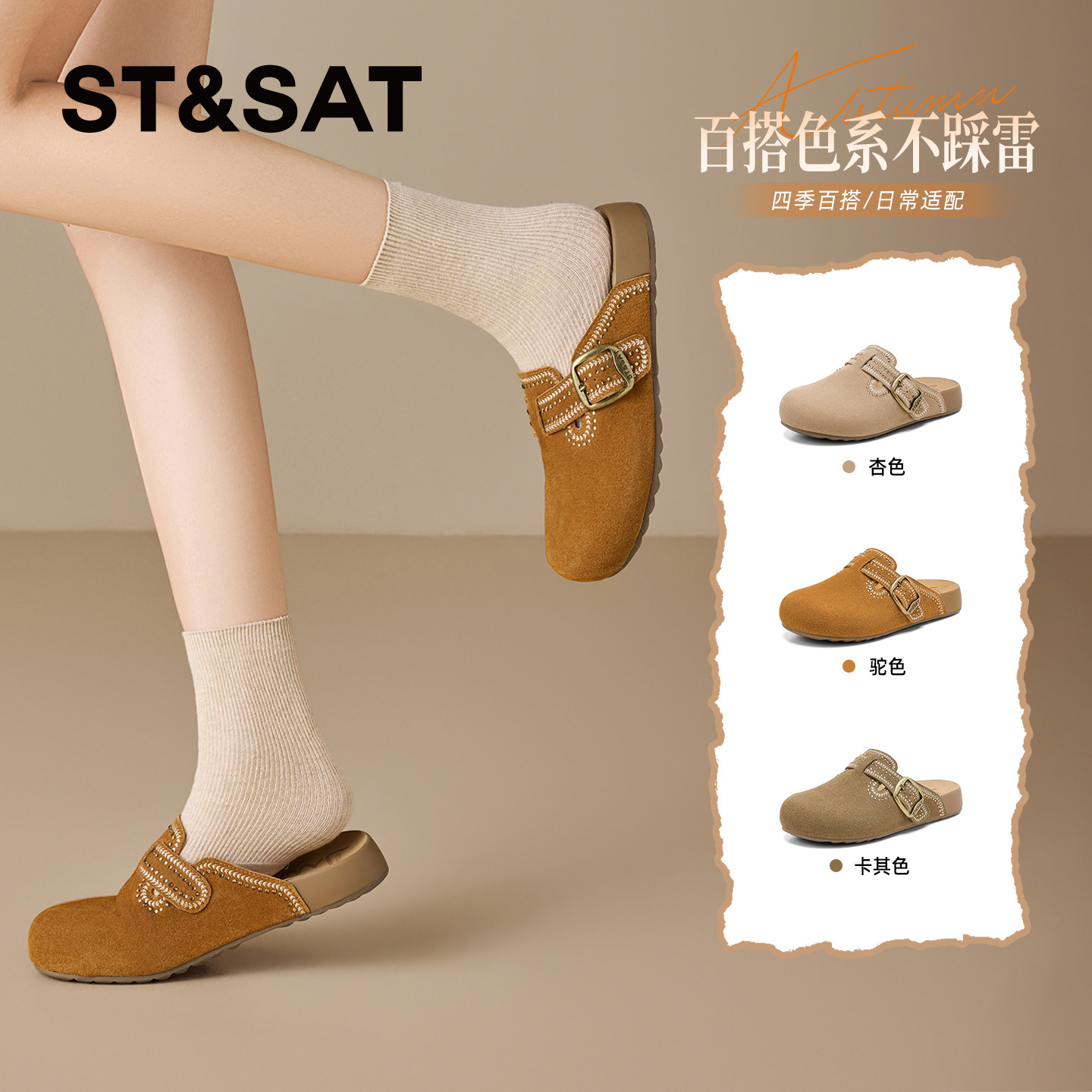 女2026春季 新款 外穿百搭舒适阿甘鞋 星期六厚底勃肯鞋 一脚蹬包头鞋