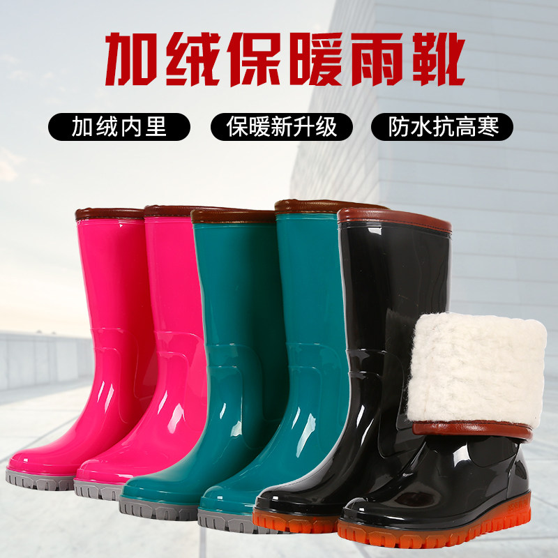 加棉套鞋 冬季 防水防滑棉水鞋 大码 保暖雨鞋 女中高筒加绒雨靴加厚款