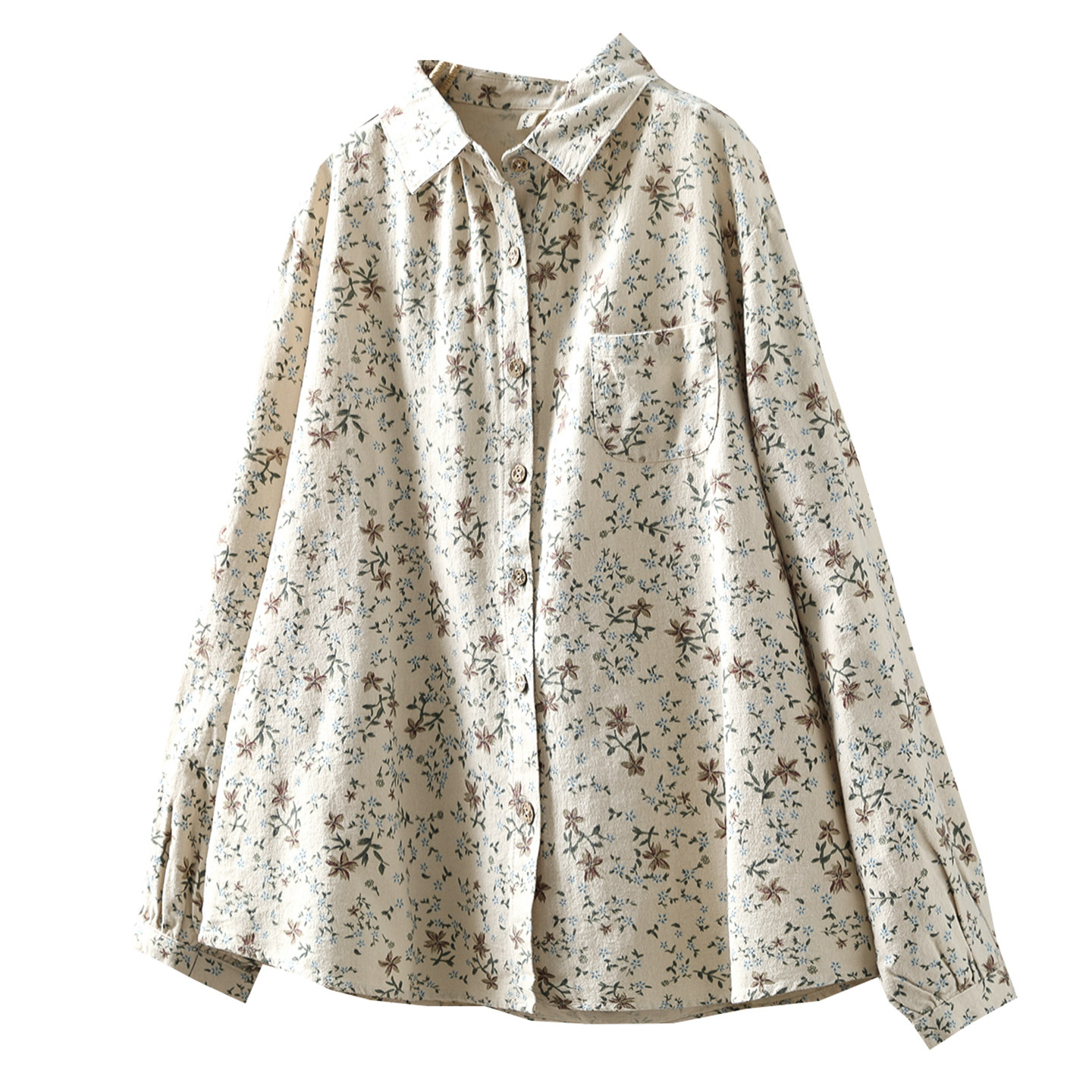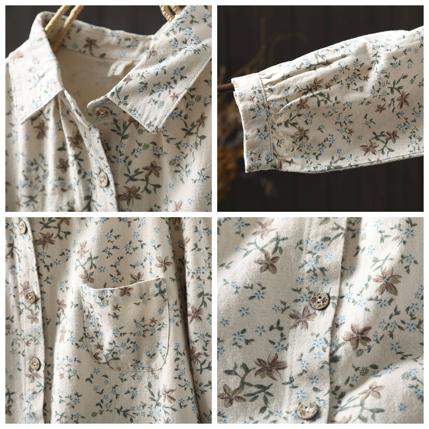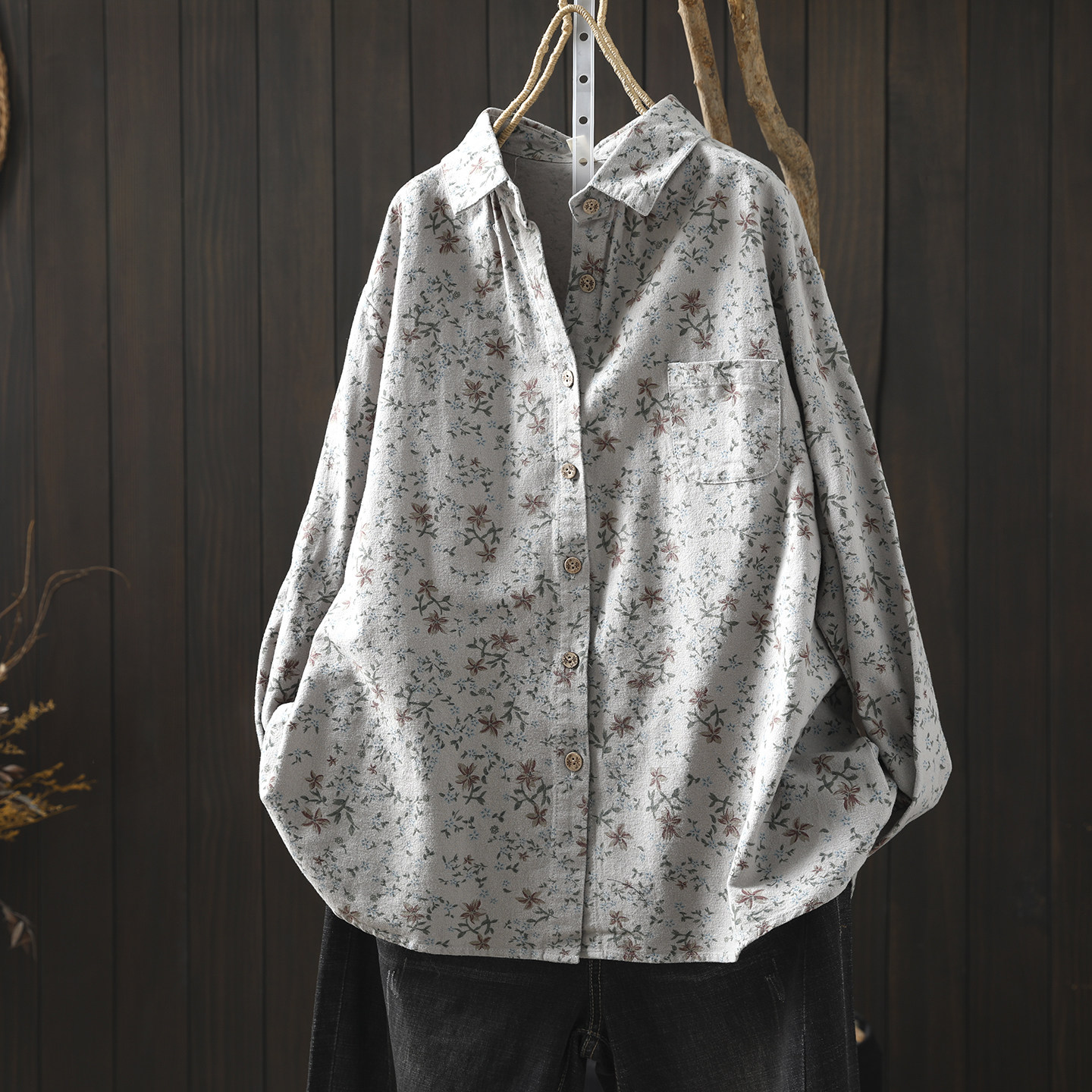 衬衫 女设计感小众2026新款 初春纯棉磨毛碎花气质文艺穿搭宽松衬衣