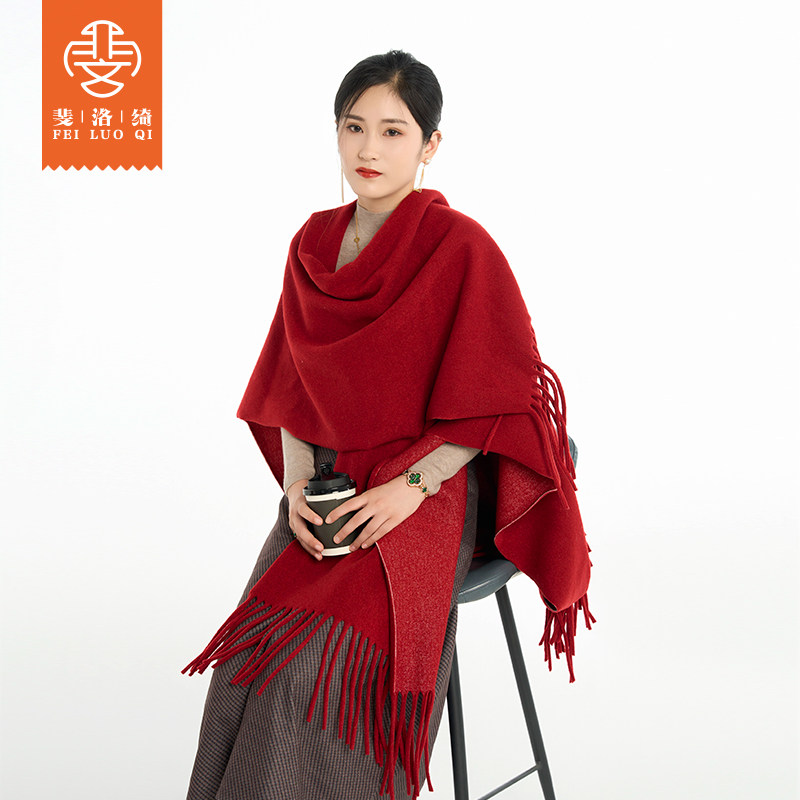 披肩女外搭羊毛披风红色保暖空调房高端大气披肩旗袍结婚新款 斗篷