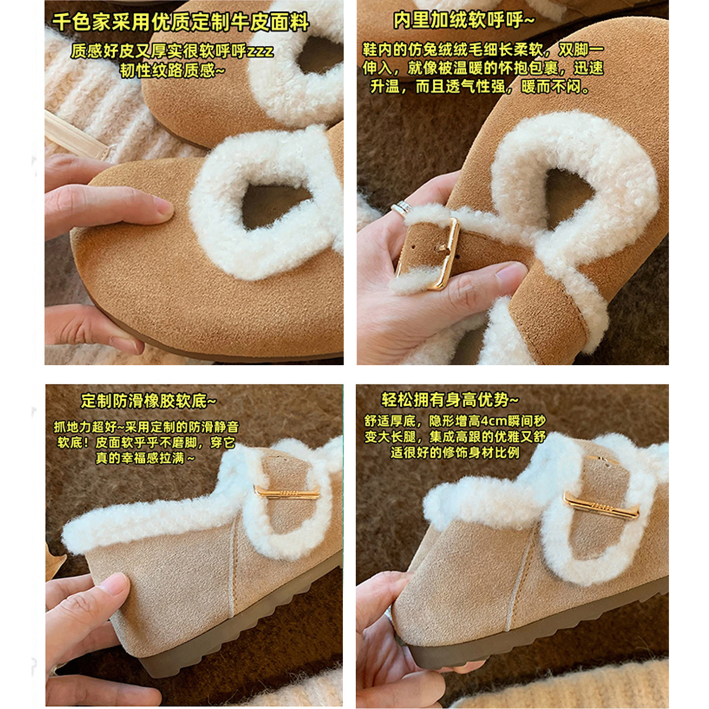 加绒雪地靴保暖棉鞋 牛皮版 新款 单鞋 毛毛内增高勃肯鞋 女2025冬季