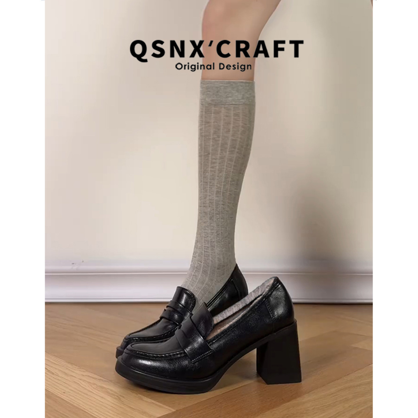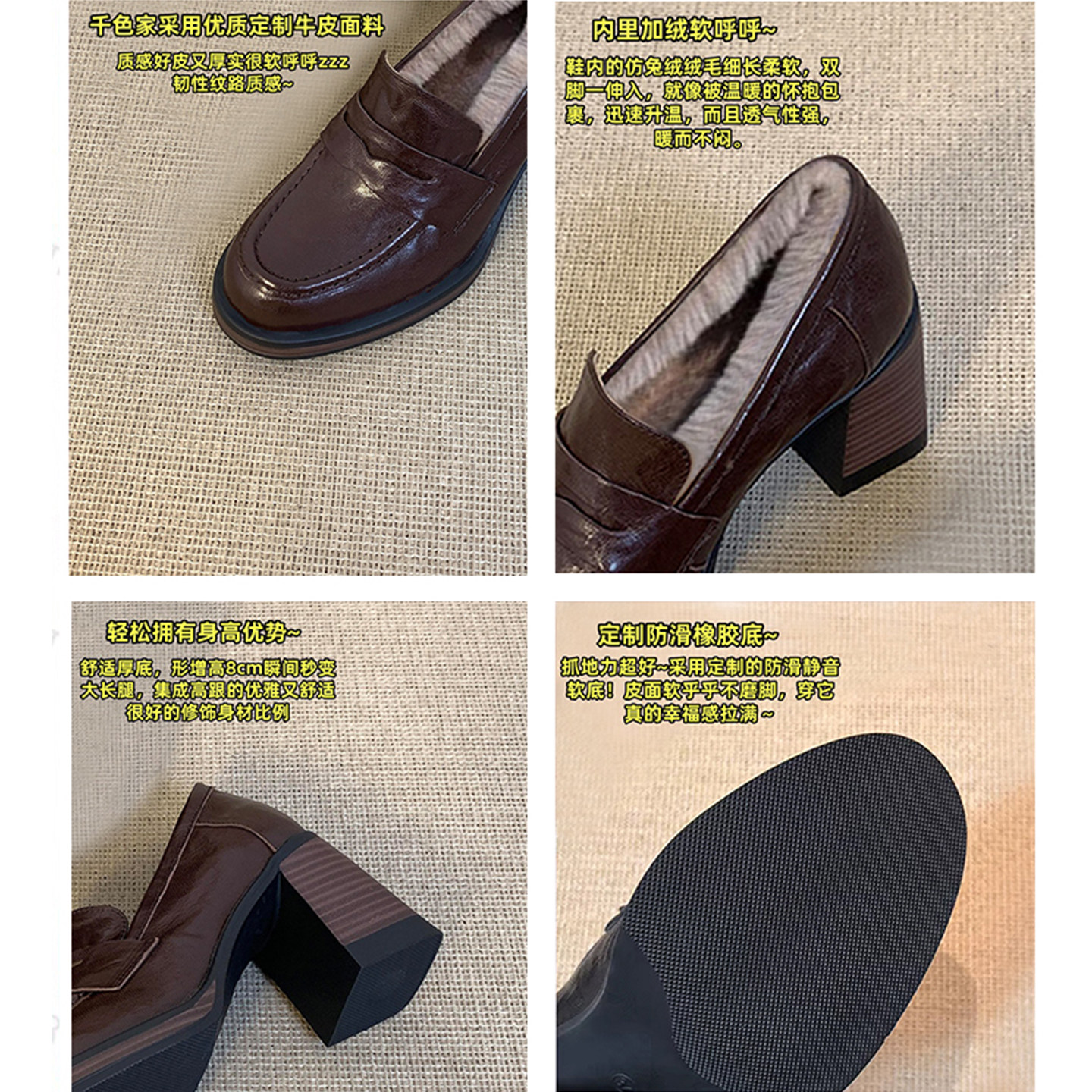 加绒高跟乐福鞋 女2025秋冬新款 粗跟单鞋 真皮版 增高英伦风小皮鞋