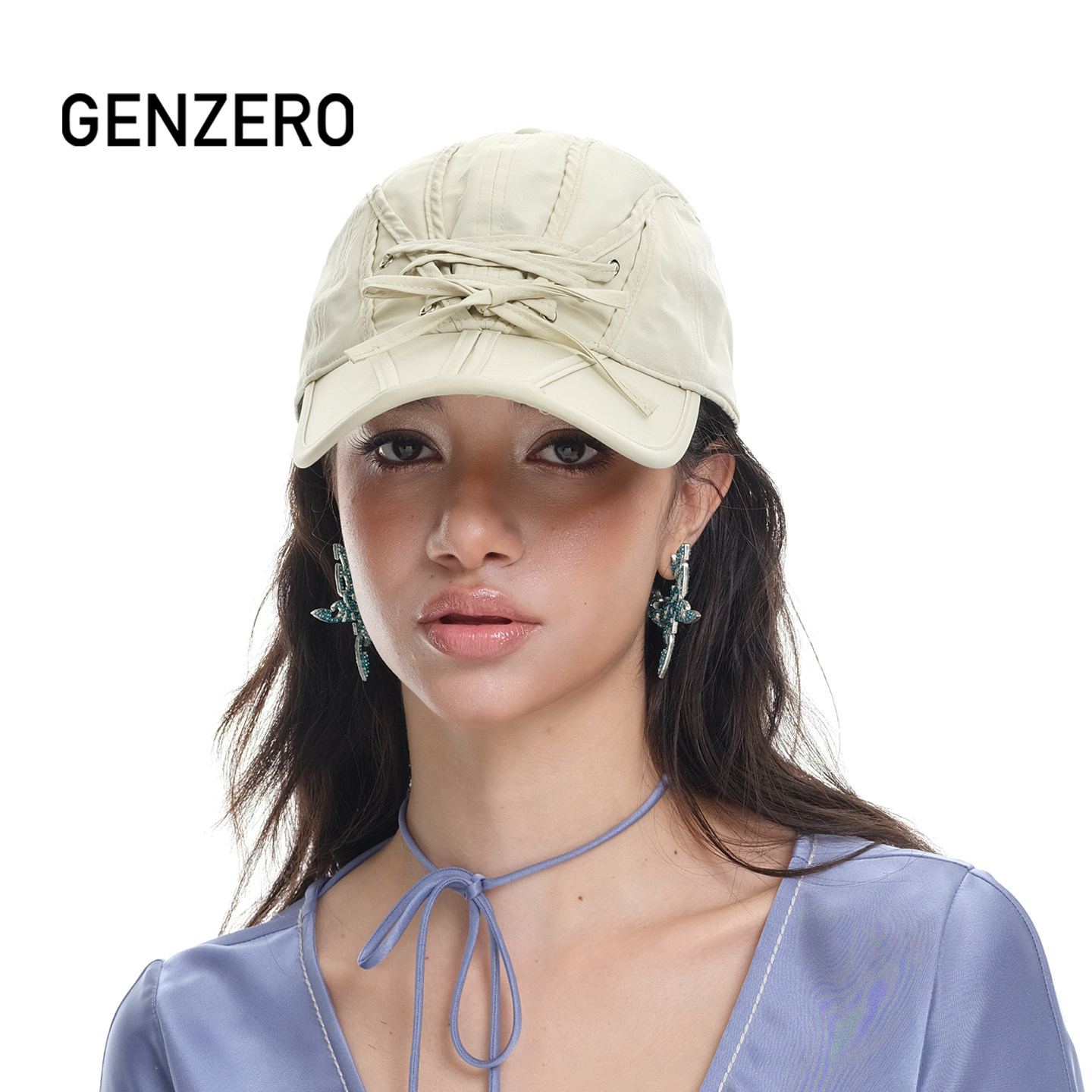 GENZERO「intri」米色棒球帽拼接绑带休闲运动遮阳帽鸭舌帽
