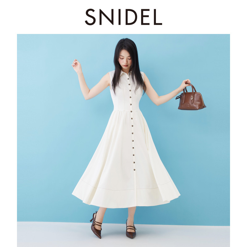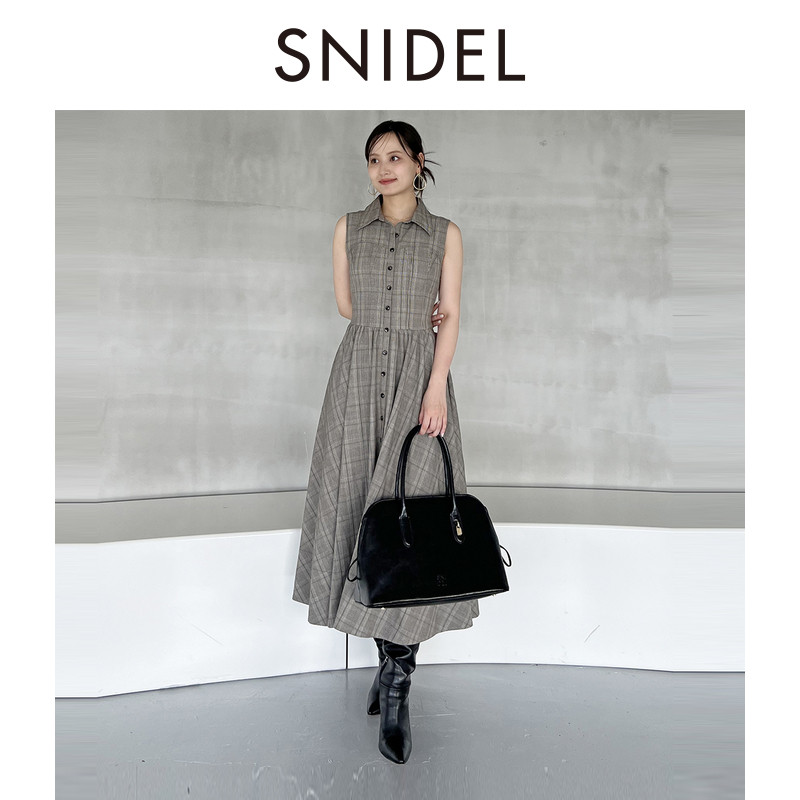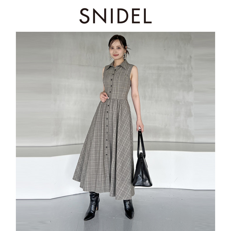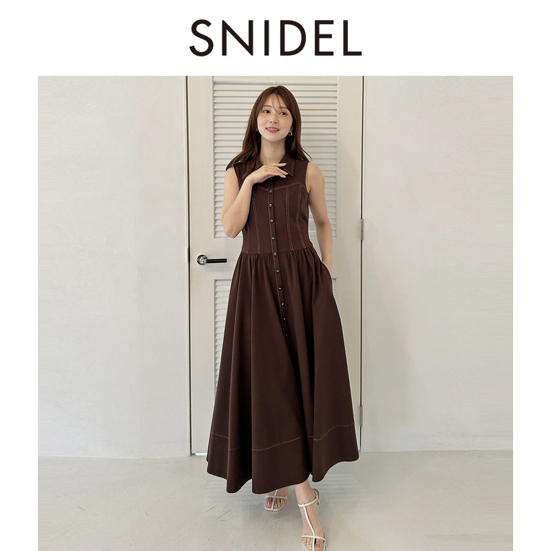 绑带收腰衬衫 SNIDEL2025秋冬新品 气质翻领无袖 连衣裙SWFO254136