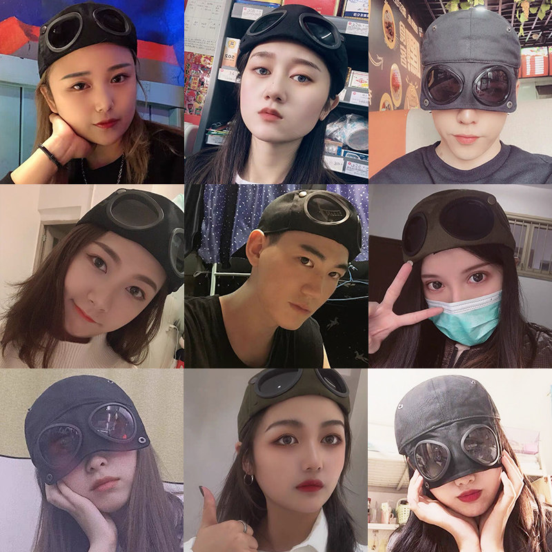 飞行员帽子男韩版 潮眼镜鸭舌帽墨镜女秋季 军绿ins潮牌秋天太阳帽