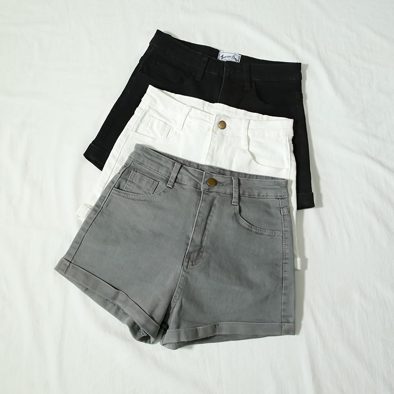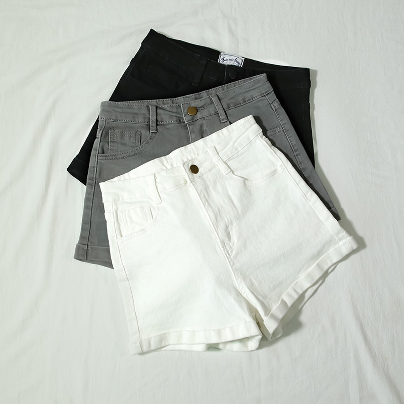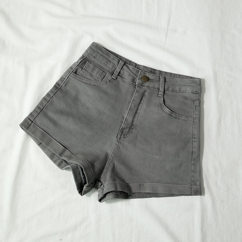 女2026新款 大码 夏季 显瘦灰色高腰牛仔短裤 韩版 热裤 弹力紧身短裤 女