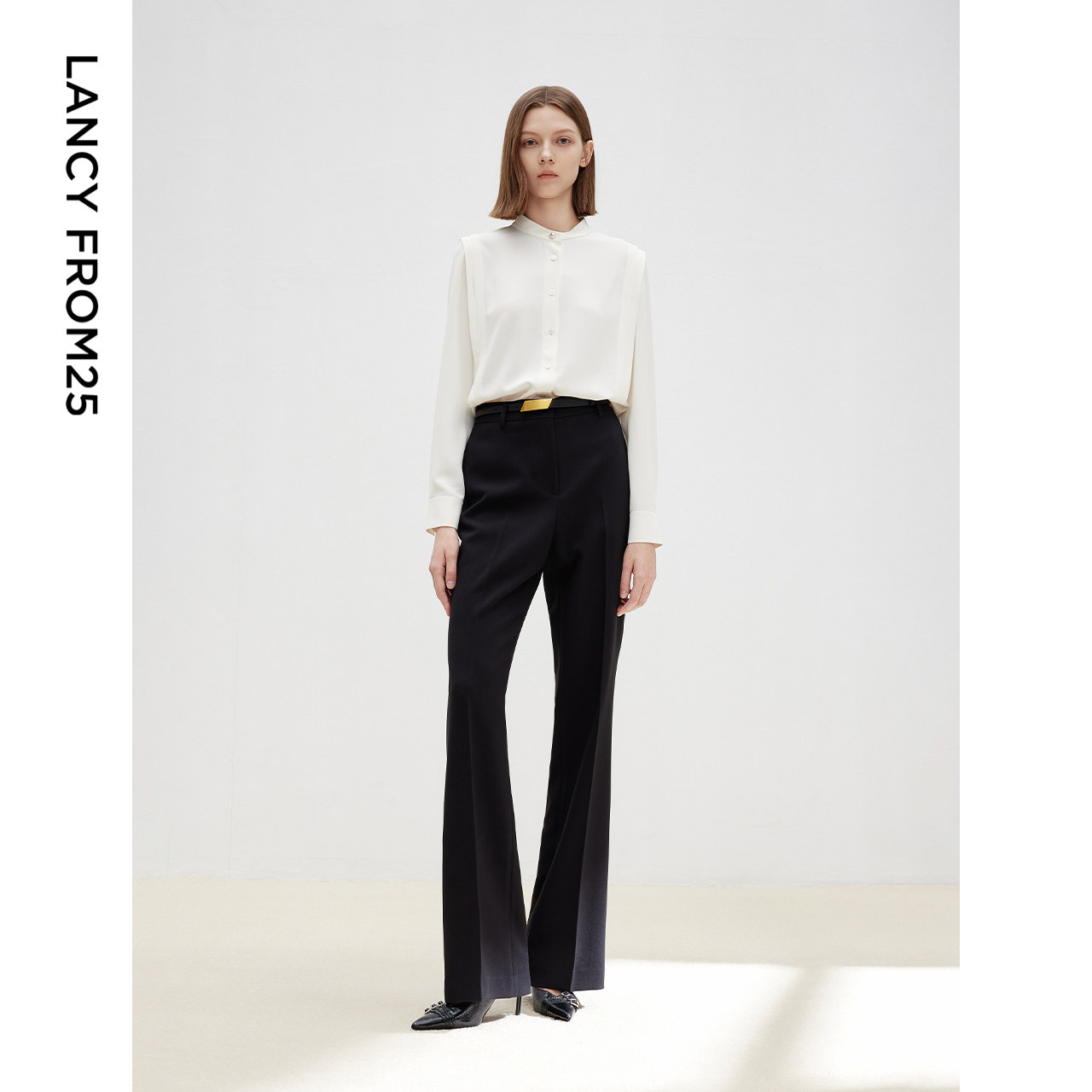 通勤设计感白色气质长袖 立领衬衫 内搭上衣2025年秋季 朗姿法式 新款