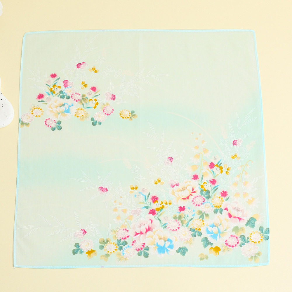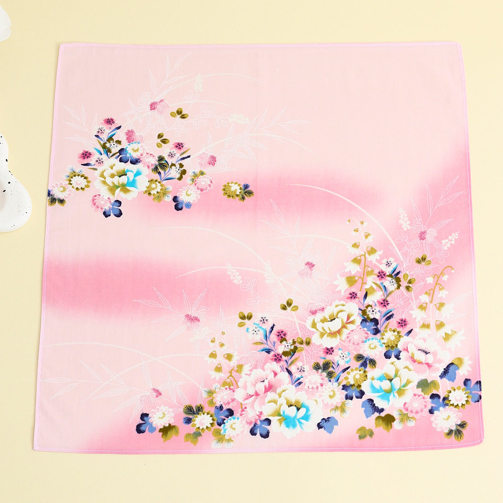 43cm精梳棉女士纯棉印花手帕小方巾日韩系手绢伴手礼渐变碎花丝巾